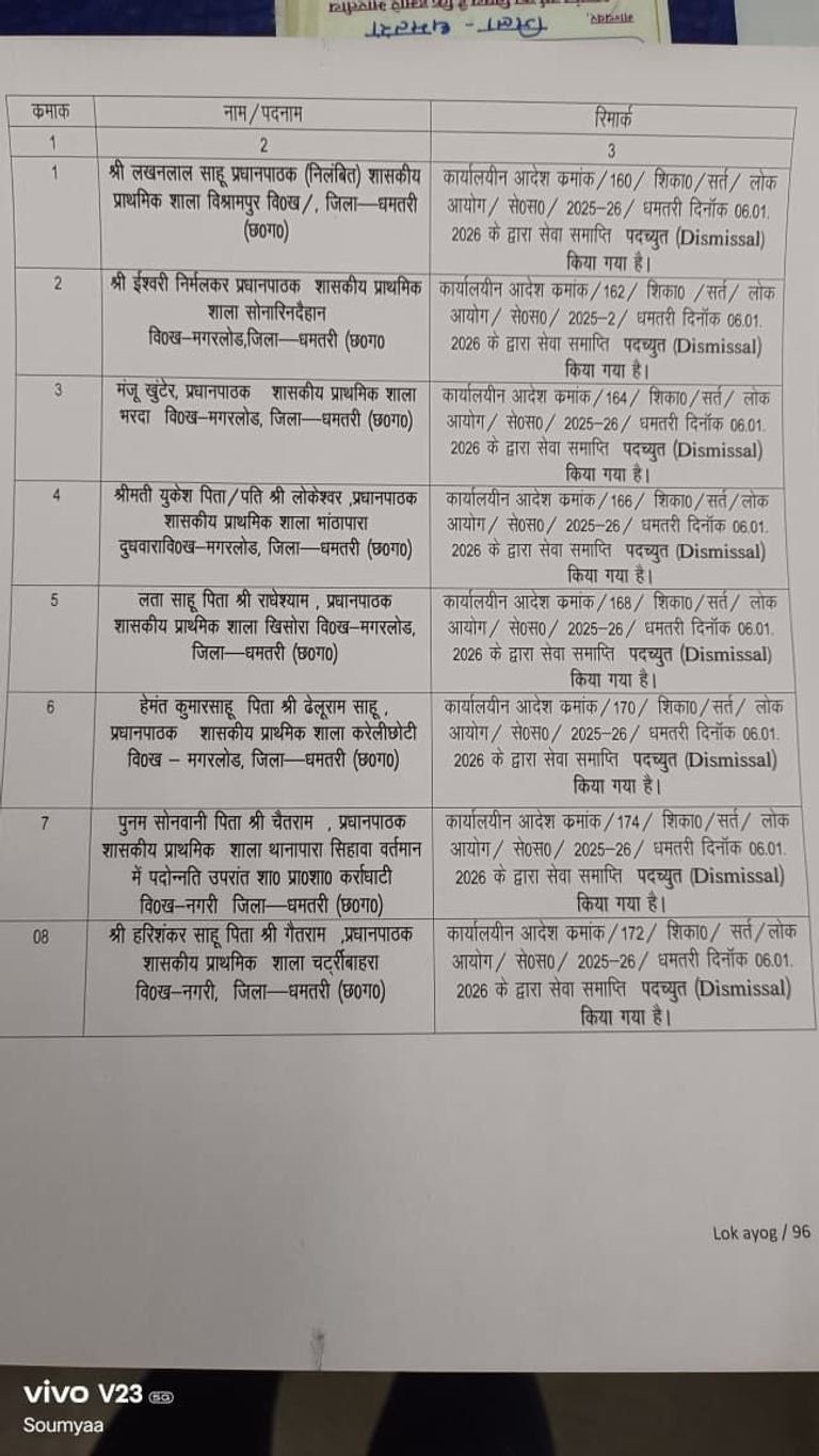 रायपुर/ शिक्षा विभाग ने बड़ी कार्रवाई की है। फर्जीवाड़ा मामले में 8 प्रधान पाठकों को बर्खास्त कर दिया गया है। शिक्षा विभाग की इस कार्रवाई के बाद हड़कंप मचा हुआ ...
