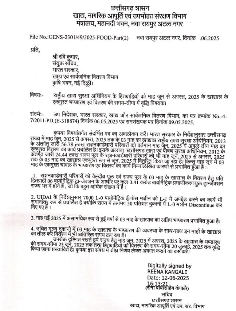 खाद्य विभाग में केंद्र सरकार को पत्र लिखा है और 20 जुलाई तक चावल वितरण सीमा बढ़ाने की मांग की है। पत्र में कहा गया है कि 3.41 करोड़ बायोमेट्रिक ट्रांजैक्शन करना...
