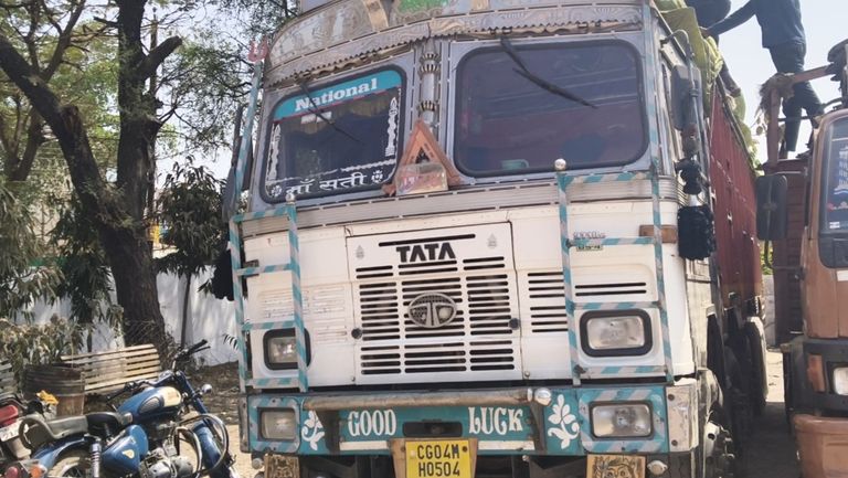 अछोली चौक के पास कोयले से भरी अनियंत्रित ट्रक पैड़ से टकराई